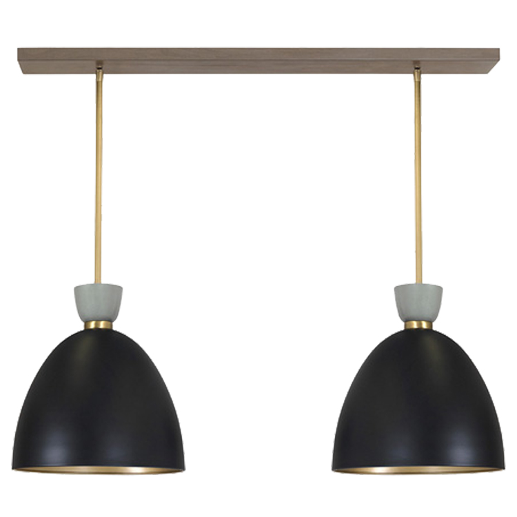 This pendant lamp has an antiqued brushed brass, knotty ash finish that includes metal shades. Shades are antique brass finish interior.